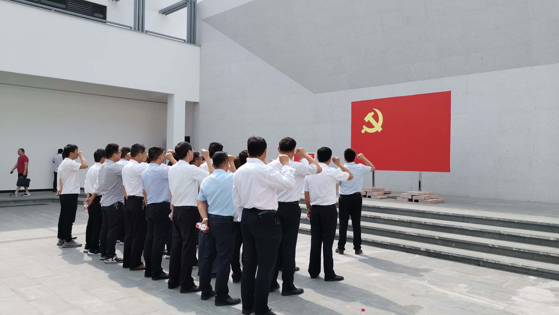 現場參觀學習結束后,全體黨員面對鮮紅的黨旗,集體宣誓,重溫入黨誓詞,堅定理想信念,提升思想境界。
