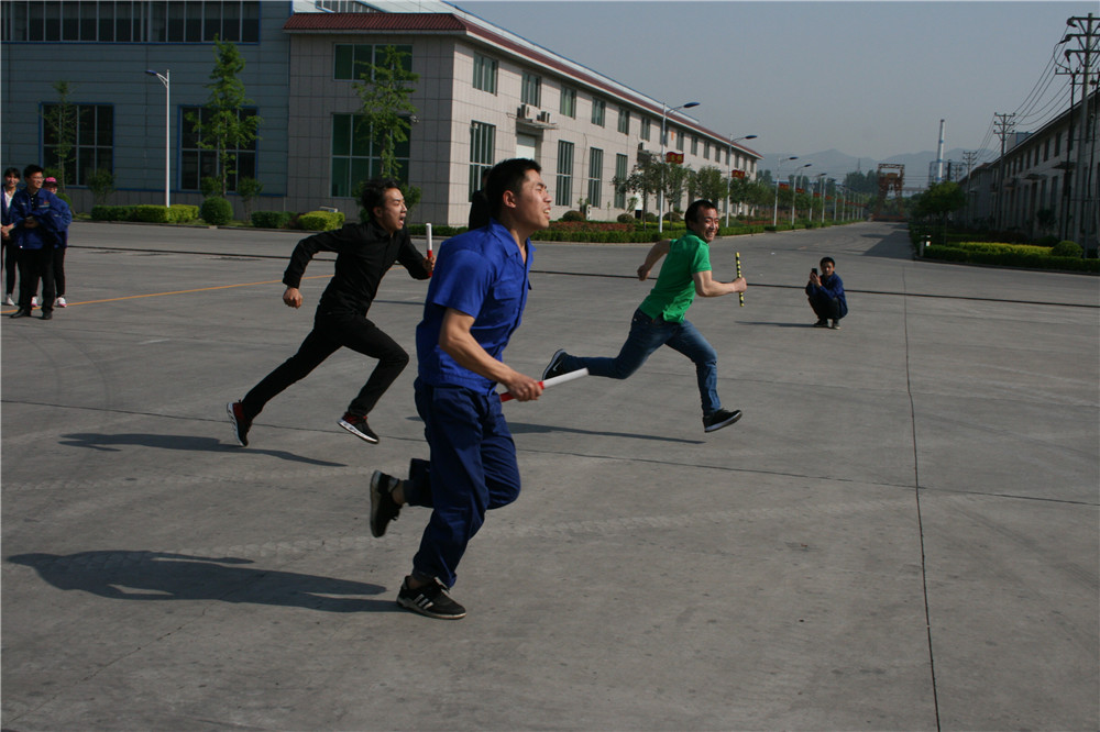 上午8點10分,十三支代表隊在引導員的引導下,隨著運動員進行曲的音樂,身著工裝,排著整齊的隊伍,邁著矯健的步伐,精神抖擻依次進場并經過主席臺。開幕式在雄壯的國歌中拉開了序幕,集團公司副總經理郭日倉發表熱情洋溢的講話,他說:職工運動會是弘揚企業精神,加強企業文化建設的一項重要途徑和載體,它能夠激發職工熱情,強健職工體質,凝聚職工力量,使職工以更加飽滿的工作激情投入到企業的各項工作中。本屆運動會共有270余名參賽選手參加13個項目的比賽。希望全體職工把本屆運動會激發出來的熱情,轉化為愛崗敬業、忘我工作的巨大動力,凝聚成攻堅克難、奮發有為的強大合力,在董事會的領導下,精誠團結,攜手并進,共同譜寫林州重機新篇章。裁判員代表李榮、運動員代表秦建國分別進行了宣誓,最后總經理郭釧宣布第三屆職工運動會開幕。