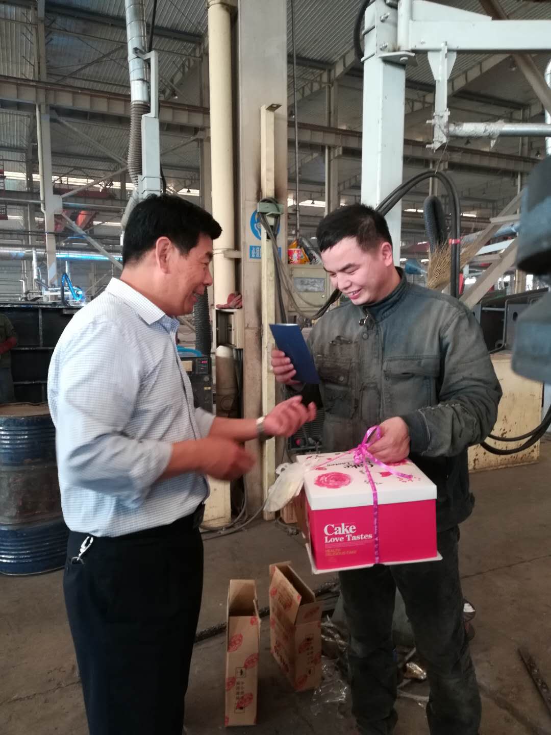 5月10日上午8時許,公司工會主席路建存攜帶生日蛋糕和生日賀卡走進車間,親自將生日禮物送到當天過生日的員工手中,并代表公司董事長、總經理表示生日祝賀。當路主席把生日蛋糕送到員工手中時,他們感到非常驚訝,有的員工本人都不記得今天是自己生日,而公司把生日禮物送到了手中,員工們激動的說:非常感謝公司領導的關懷。